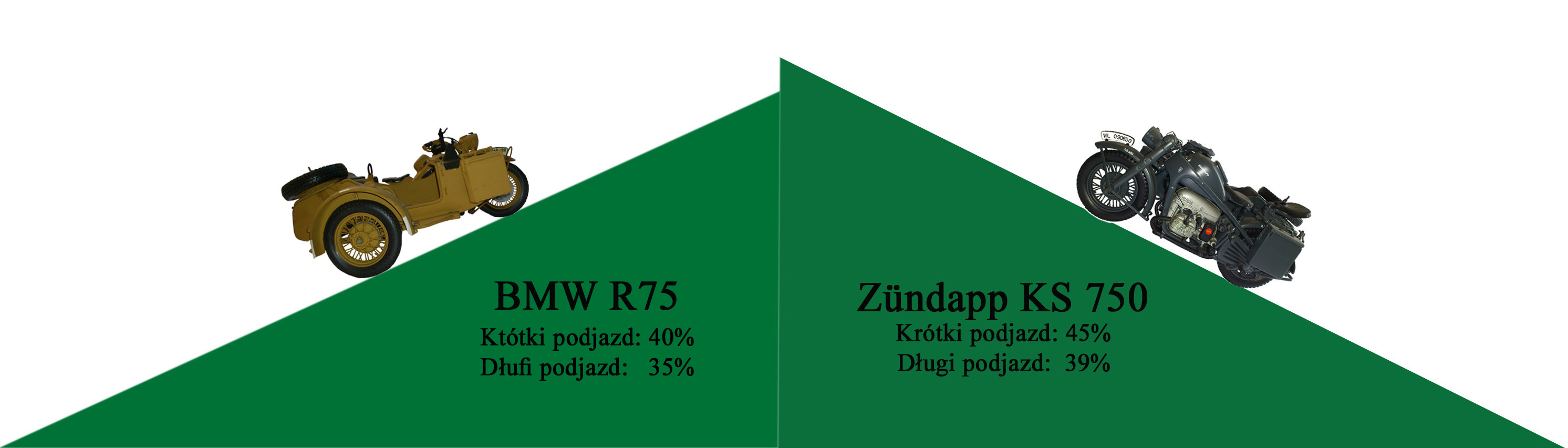 Według oficjalnych, fabrycznych danych zdolność do pokonywania wzniesień wynosi w przypadku BMW R75: