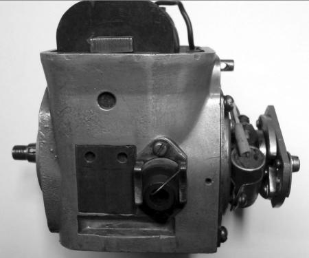Brak jest wybitej strzałki, która wskazuje na którym szczotkotrzymaczu wystąpi aktualnie iskra. W tym wypadku strzałka powinna znajdować się w położeniu poziomym, w górnej części płytki a jej grot winien być skierowany w lewą stronę. Strzałka to drobnostka ale jakże pomocna gdy szybko chcemy ustalić, w którym cylindrze tłok osiągnął górny martwy punkt. Brak strzałki utrudnia także szybkie i prawidłowe zamontowanie iskrownika w silniku.