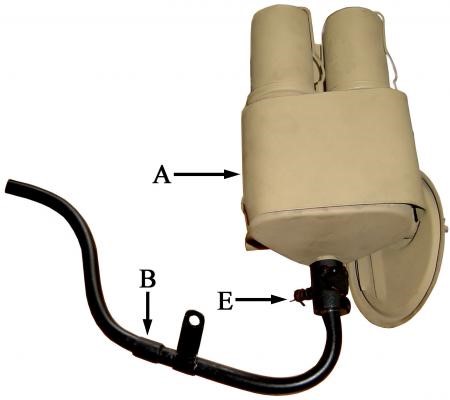 B - Rurka (dwuczęściowa z przegubem) łącząca komorę podgrzewacza z rurą wydechową