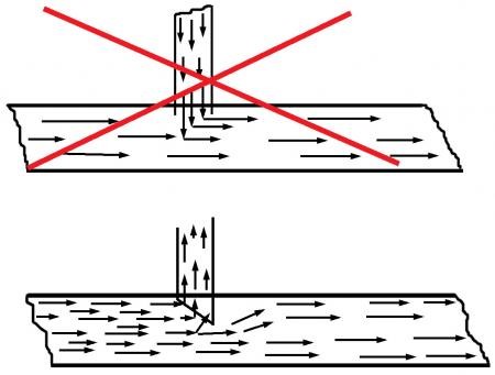 6.   "Mrożenie" gaźnika wystąpi także, gdy nieprawidłowo wspawamy rurkę łączącą  do rury wydechowej. Nieprawidłowe jak i właściwe postępowanie pokazuję na rys. 7.