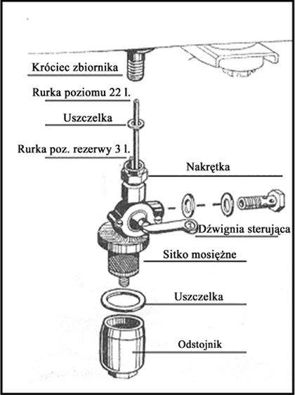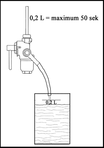 Czy benzyna wydostająca się z kranika benzynowego na pewno wypływa w wystarczającej ilości? Na oryginalnym rysunku kranika benzynowego umieszczona jest informacja, że powinien on umożliwiać wypłynięcie w ciągu godziny 22 litrów paliwa. Na rynku występują repliki kraników benzynowych, w których wskutek dokonania błędnego pomiaru w oryginalnym kraniku, przepływ paliwa na godzinę jest stanowczo za mały. Także nieźle wyglądające oryginalne kraniki benzynowe mogą być wewnątrz niesprawne i przepuszczać zbyt małą ilość benzyny. Z naszego doświadczenia wynika, że praktycznie wystarcza jeżeli kranik przepuszcza 14-15 litrów paliwa na godzinę.