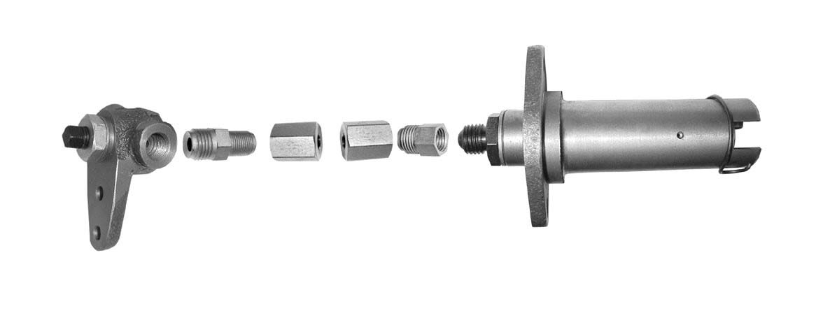 Widok zespołu nakrętek i łączników niezbędnych w prawidłowo wykonanym przewodzie hamulcowym.